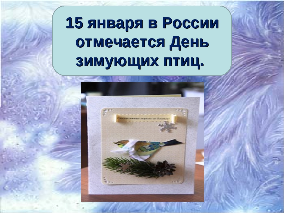 15 января отмечается Всероссийский экологический праздник «День зимующих птиц России».